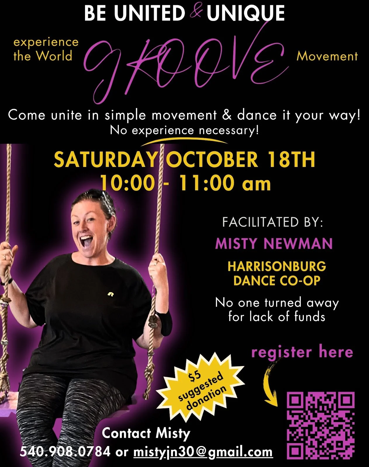 HDC PARTNER OFFERING: Following the circle at 10am-11am, we will be led by Misty for a Groove session!