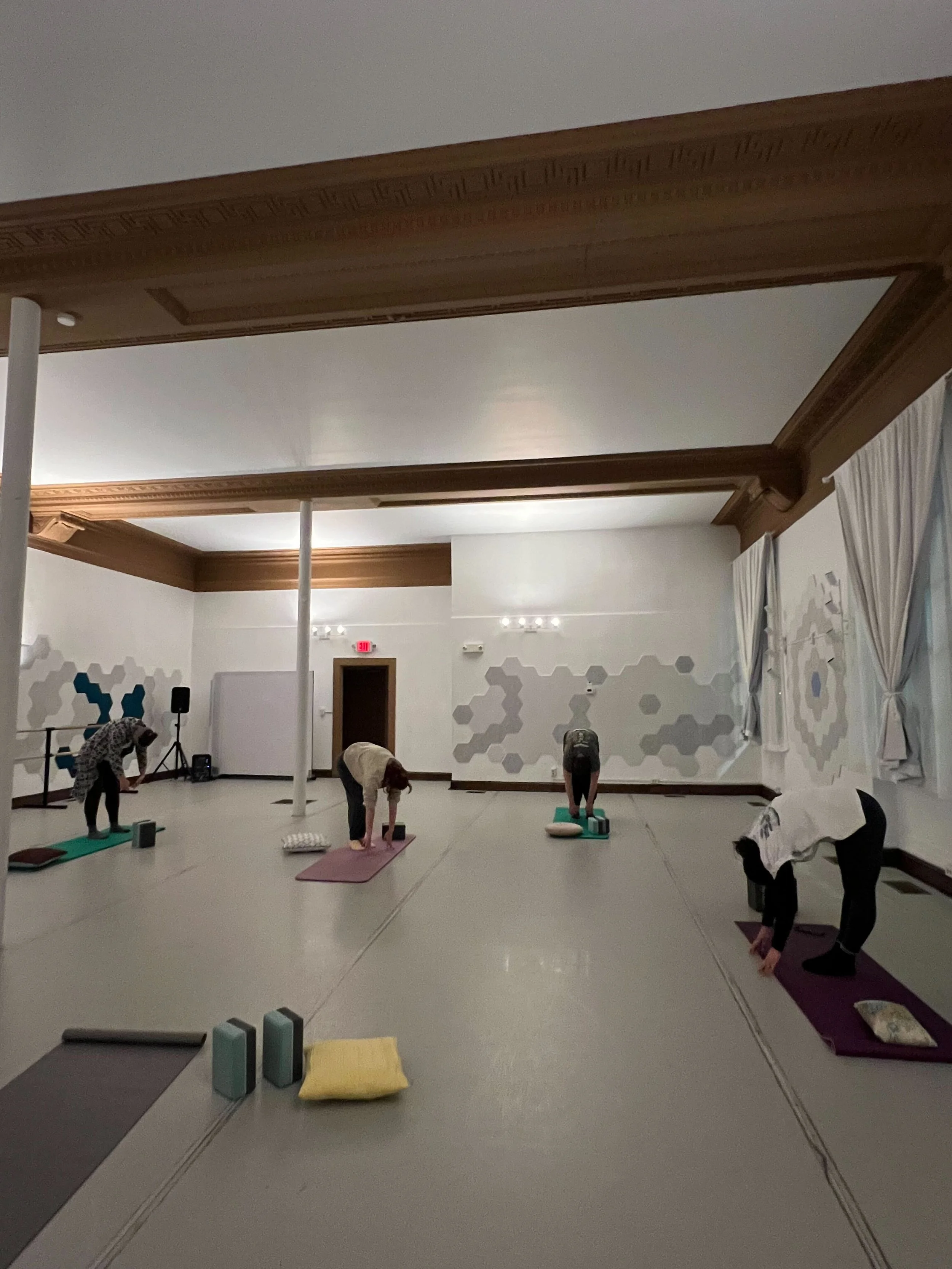 Our centrally located Harrisonburg studio space provides a calm, clean, and supportive environment for mind-body practices of all kinds, from weekly yoga flows to high-energy fitness classes, from wellness workshops to one-on-one personal training, and physical therapy. With professional flooring, high ceilings, and excellent acoustics, the White Box Studio is the perfect space for instructors and practitioners who value quality, comfort, and convenience.
